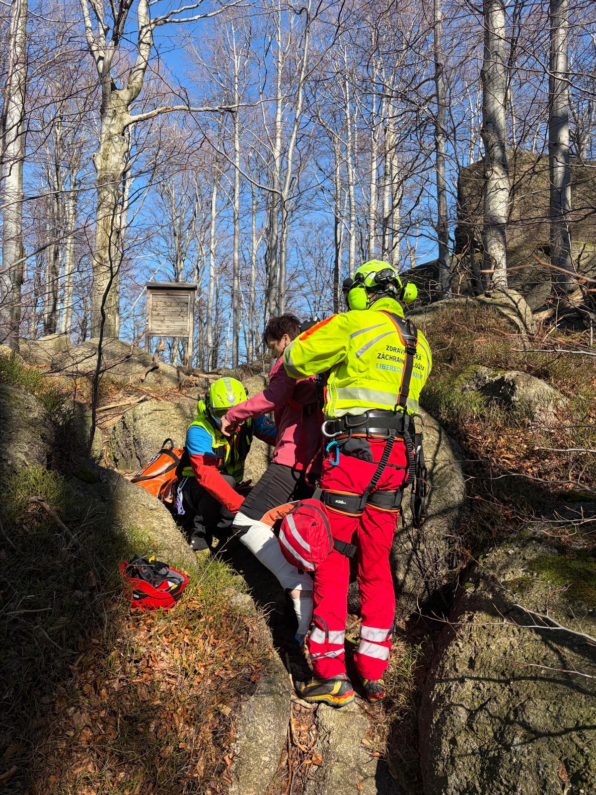 Liberecká posádka vrtulníku vyrazila do Krkonoš ihned po ukončení zcela jiného zásahu. Žena, která si vyšla na výlet utrpěla po pádu zlomeninu dolní končetiny. Její transport pozemní cestou byl v zásadě nemožný, a tudíž pro ni do terénu vyrazil vrtulník LZS Liberec. Jeden člen Horské služby zasahoval na místě jako součást posádky vrtulníku a druhý vyrazil na místo pěšky. Bylo totiž nutné dostat z nedostupného terénu také psa pacientky, ten se na palubu vrtulníku již nevešel.