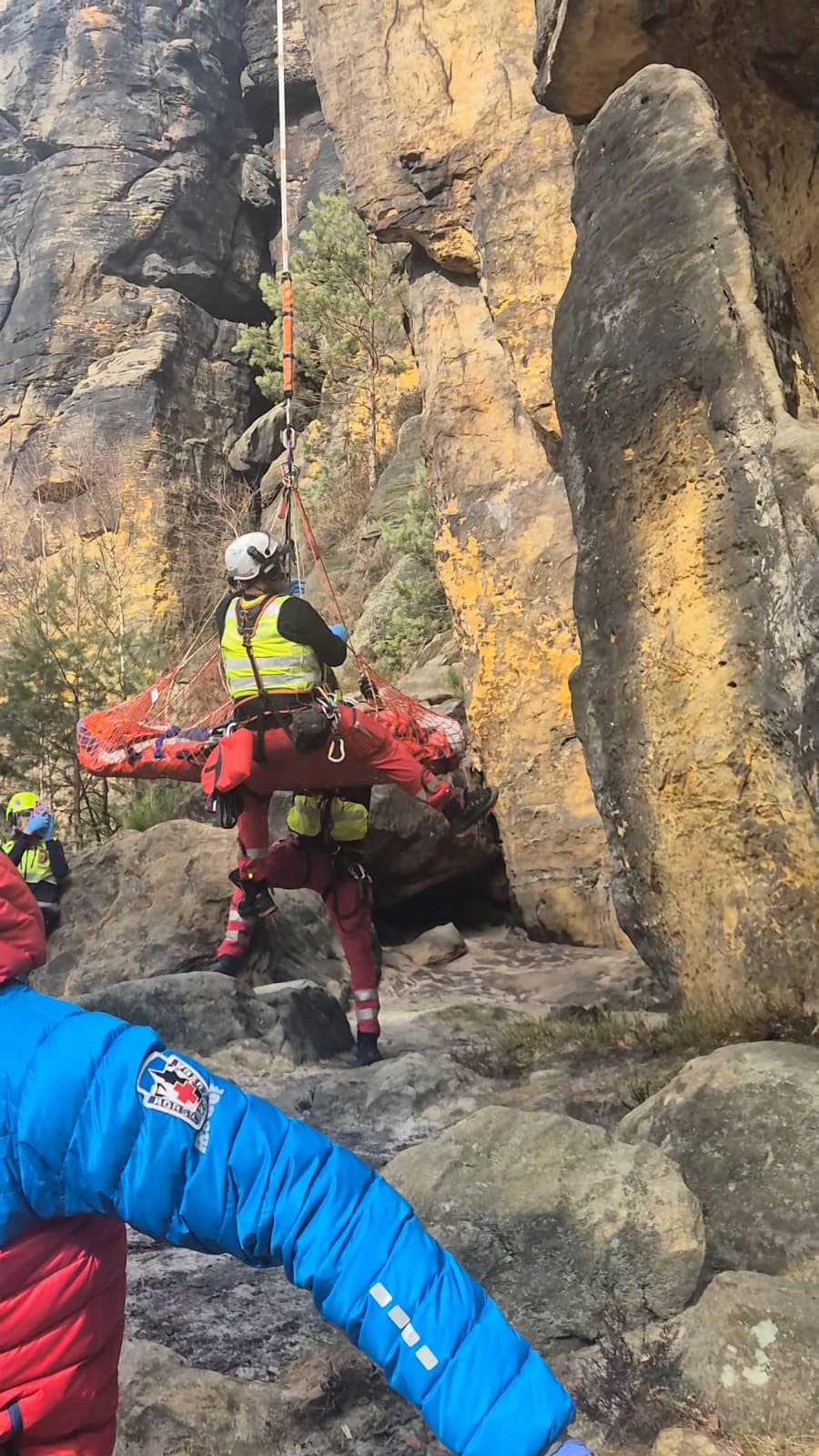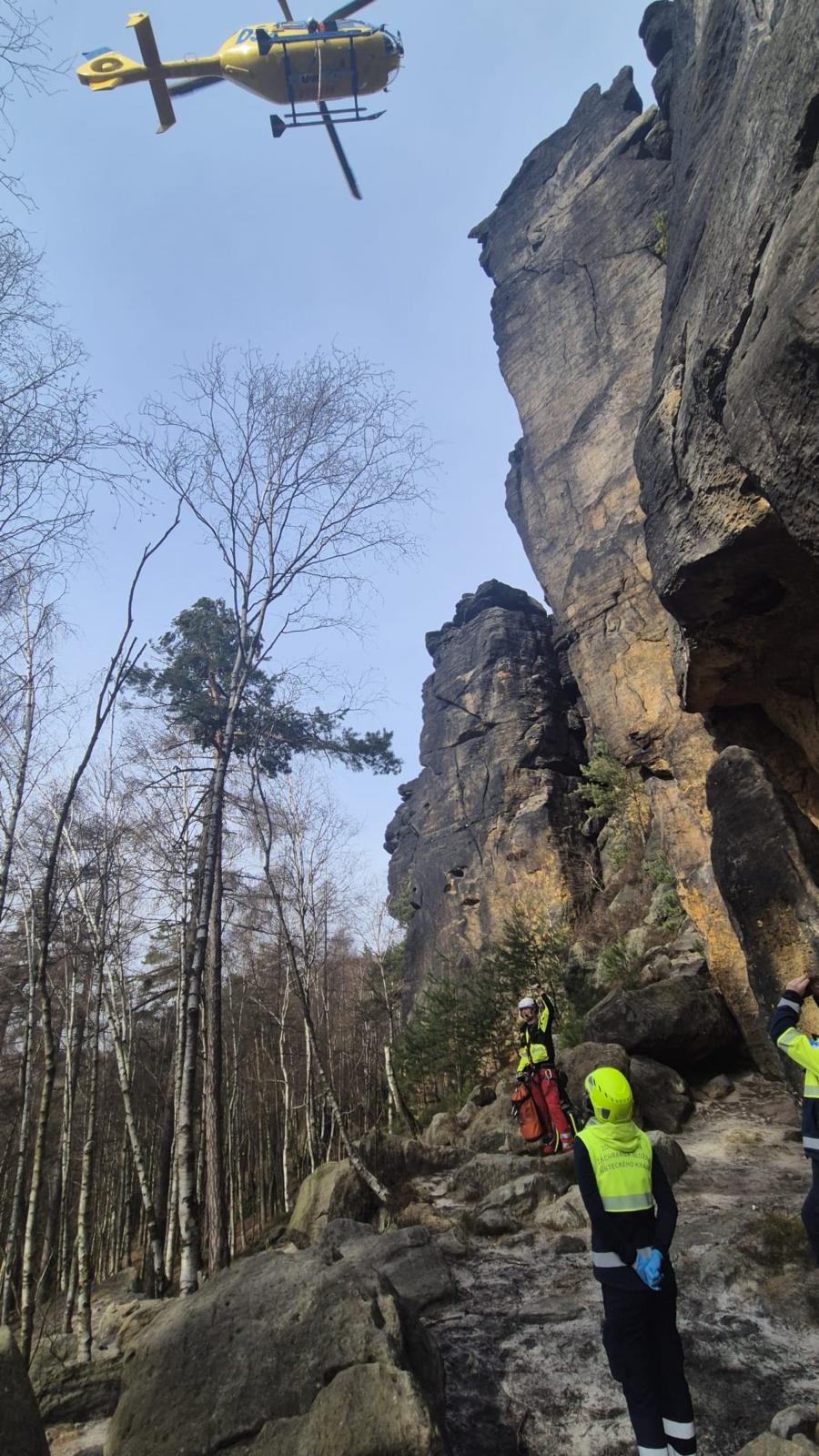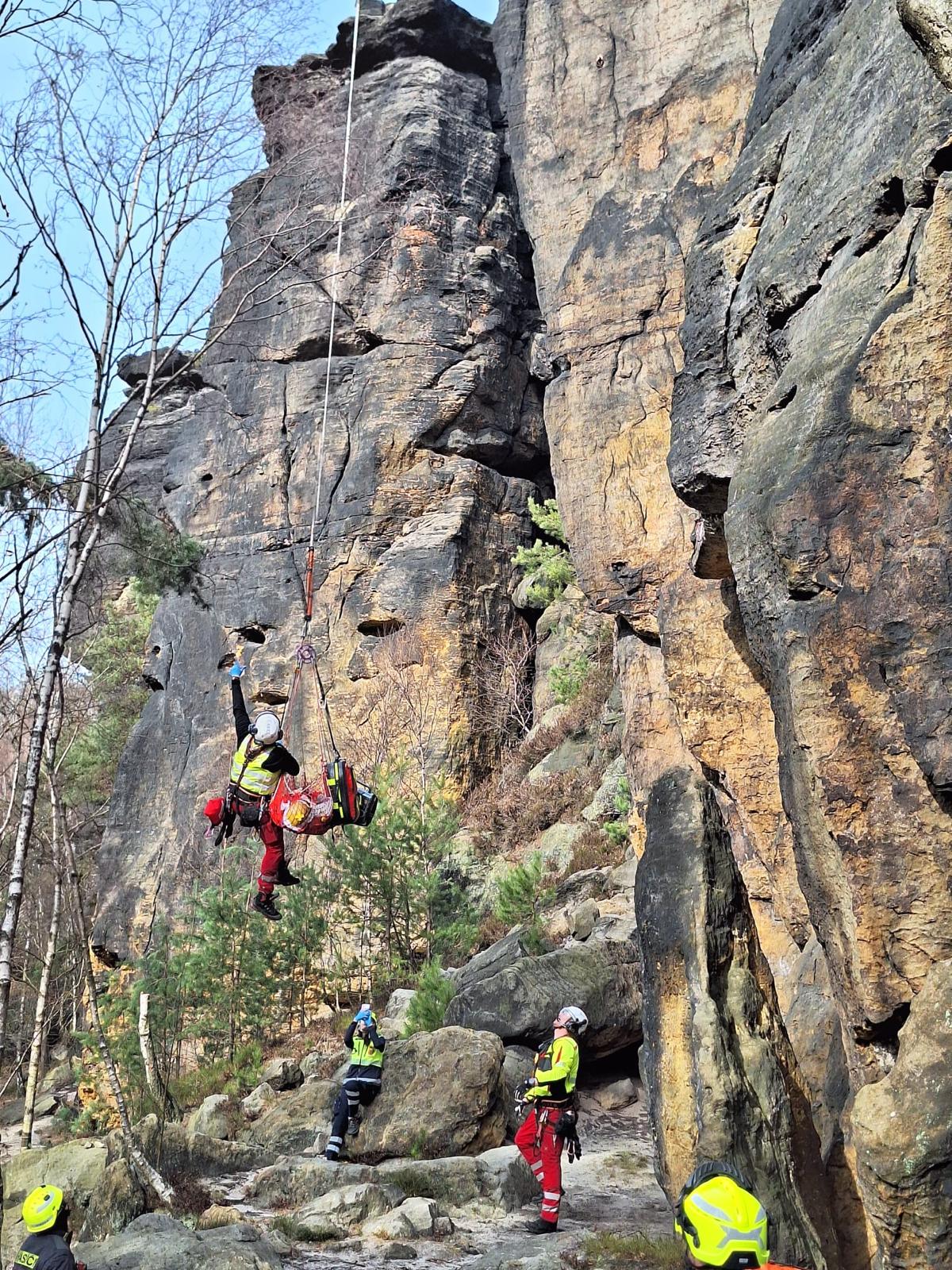 Srážka lyžařů s vážnými zraněními mladistvého lyžaře, náraz do sněžného děla po nezvládnutí jízdy na lyžích nebo bezvědomí po pádu na zledovatělé sjezdovce. Takové zásahy byly těmi vážnými v minulém týdnu. Dnešní teplé počasí a zásah v Tisé horským záchranářům připomněl, že se do skal vrací život a množství lezců. Prvolezec bez postupového jištění spadl z cca čtyřmetrové výšky v Labských pískovcích poblíž Ostrova. Zlomenina levé nohy a pravé horní končetiny byly následky tohoto pádu. U zásahu spolupracovali telničtí horskolslužebníci s kolegy z hasičského záchranného sboru a s posádkou leteckých záchranářů.
