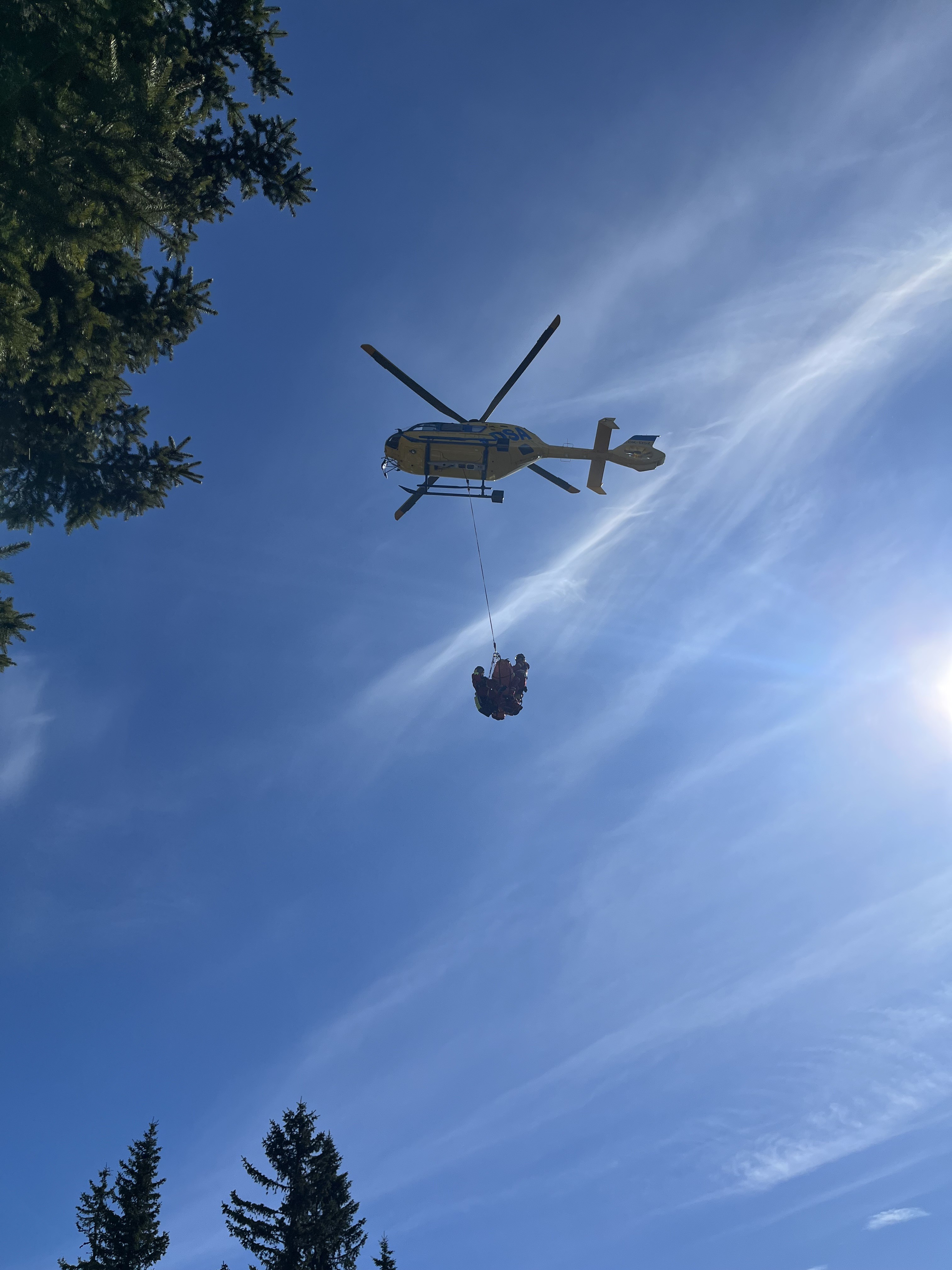 Záchrana začala jako mnohokrát přijetím telefonátu dispečerem oblasti a okamžitým rozhodováním jak nejlépe a nejrychleji poraněnému turistovi pomoci. Krkonošští horskoslužebníci vyrazili směrem k postiženému hned ze dvou míst. Ze Špindlerova Mlýna a zároveň z Pece pod Sněžkou. Do akce se zapojil také záchranáři LZS Hradec Králové / Kryštof 6 / a posádka RZP z Vrchlabí. „Po příchodu na místo zásahu jsme poraněného ošetřili ve spolupráci s posádkou vrtulníku která vystoupila přímo do strmého svahu z paluby. Protože poranění hrudníku paže a hlavy si vyžádaly letecký transport připravili jsme ošetřeného pacienta do podvěsové sítě, aby mohl být v podvěsu transportován spolu lékařem a záchranářem k následnému přeložení na palubu a odletu do FN Hradec Králové“. Popsal zásah jeden ze špindlerovských záchranářů.