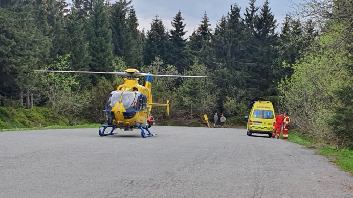 Orlické hory, 3. června 2021 – Šestačtyřicetiletá cyklistka utrpěla včera odpoledne těžké zranění po pádu z kola mezi Šerlichem a Orlickým Záhořím, letěl pro ni vrtulník.