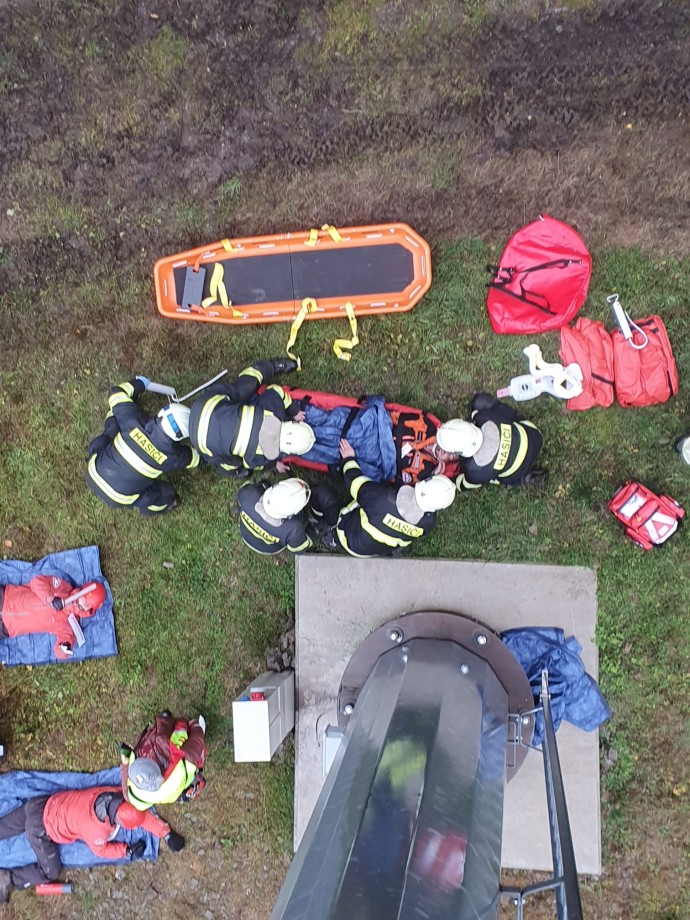 V další fázi se pak pustili horští záchranáři do výšky. S použitím lanové techniky nejdříve vystoupali ke stojícím sedačkám a zajistili cestující proti pádu. „Pak jsme postupně, tak, jak jsme byli mnohokrát trénováni, a jak to známe z mnohaleté praxe, evakuovali turisty na zem. Vše se nám podařilo a velitelé cvičení mohli být s naší účastí jistě plně spokojeni,“ doplnil ke včerejší akci Jan Pochobradský.