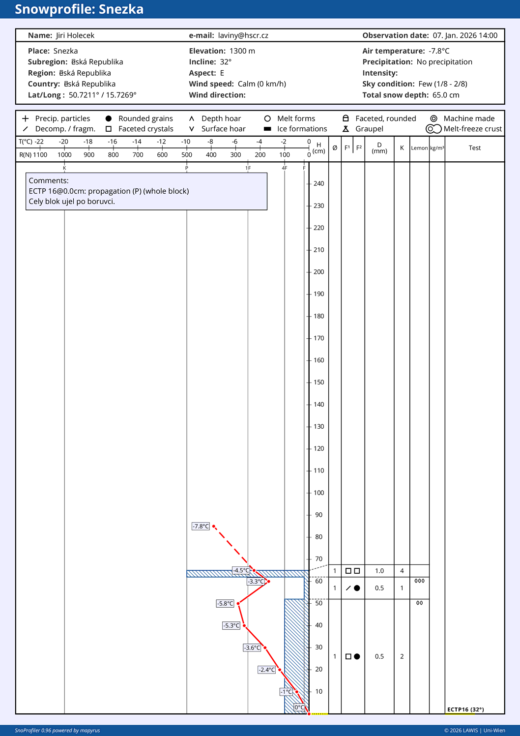 | Sníh: | Celkem: 32 cm, Nový: 8 cm, Kvalita: nový sníh - suchý |