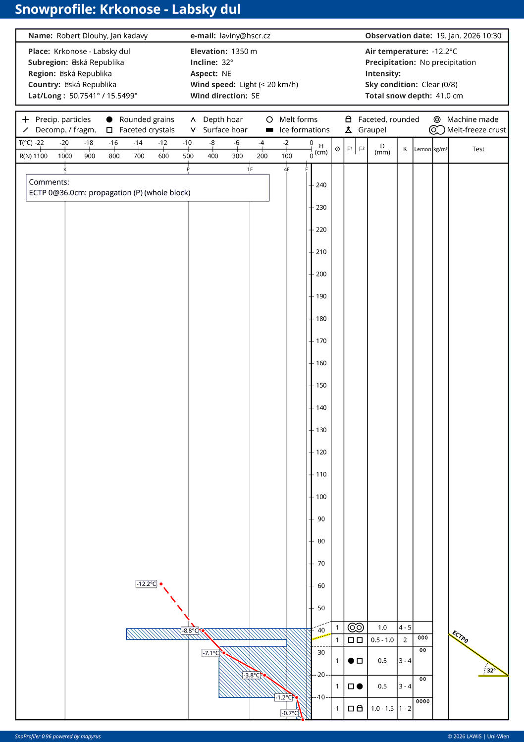 Data a předpovědi jsou orientační. Tyto informace slouží pouze pro nekomerční použití a potřeby Horské služby.