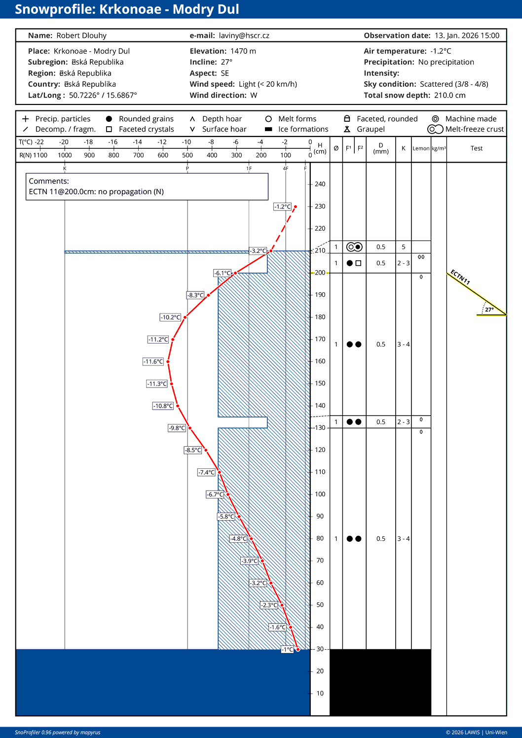 Data a předpovědi jsou orientační. Tyto informace slouží pouze pro nekomerční použití a potřeby Horské služby.
